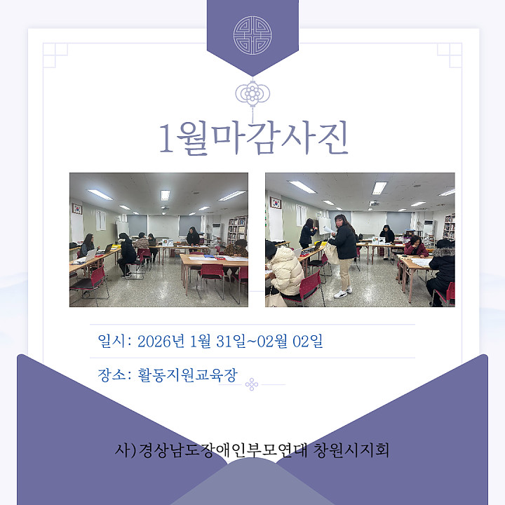 장애인활동지원(1월마감) 페이지 정보 작성자 창원시지회 작성일26-02-03 11:34 조회10회 댓글0건 본문 장애인활동지원(1월마감) 댓글목록 등록된 댓글이 없습니다. 다음글 목록