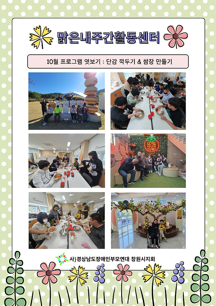 맑은내주간활동센터 10월 프로그램 엿보기 페이지 정보 작성자 창원시지회 작성일25-10-30 14:06 조회50회 댓글0건 본문 맑은내주간활동센터 10월 프로그램 엿보기 ② 댓글목록 등록된 댓글이 없습니다. 이전글 다음글 목록