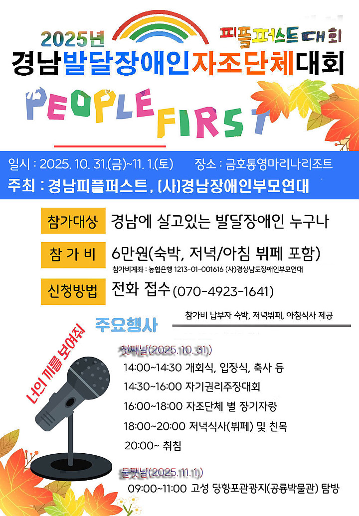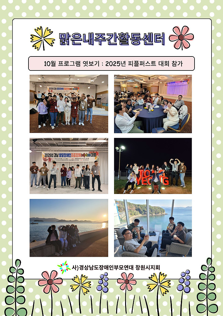 제12회 피플퍼스트대회 참가 페이지 정보 작성자 창원시지회 작성일25-11-03 15:17 조회40회 댓글0건 본문 맑은내주간활동센터 10월 프로그램 엿보기 ③*제12회 피플퍼스트 대회 참가* 댓글목록 등록된 댓글이 없습니다. 이전글 다음글 목록