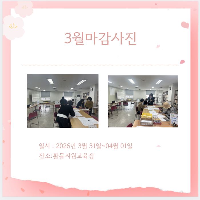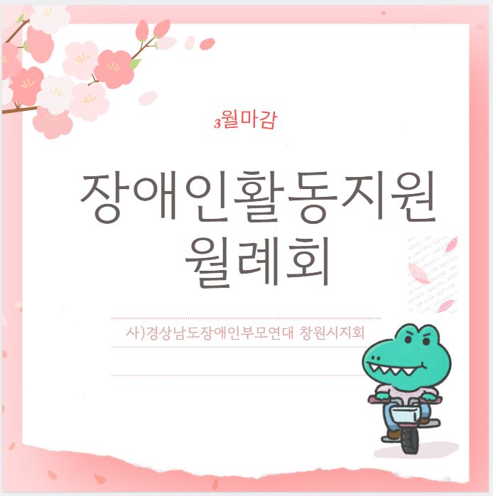 장애인활동지원(3월마감) 페이지 정보 작성자 창원시지회 작성일26-04-02 17:48 조회37회 댓글0건 본문 장애인활동지원(3월마감) 댓글목록 등록된 댓글이 없습니다. 이전글 다음글 목록